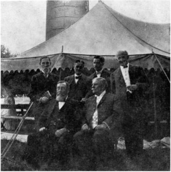 ![]() Az 1901-es Sea Cliff bibliakonferencia felszólalói: Gaebelein a jobb szélen állva, Scofield a jobb szélen ülve (forrás: Mangum és Sweetnam, 2009, 15. o.) |