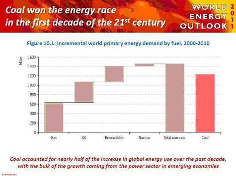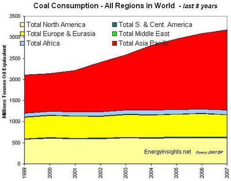 A képen az látszik, hogy milyen gyorsan felfejleszthető a szén termelése megfelelő szervezéssel. A növekedést elsősorban Kínában érték el, ahol minden héten átadnak egy Paks kapacitású szénerőművet, ami évente közel akkora kapacitás, mint a német rendszer már 2003 óta.