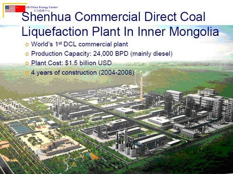 A szénben rejlő egyik legérdekesebb lehetőség a szintetikus üzemanyaggyártás. A jelenlegi világpiaci szén és olajárak mellett a kínai Shenhua szénipari vállalat képen látható üzeme nagyjából 1,5 év alatt behozta az árát, és ilyen időközönként most már ekkora extraprofitot ad. Nem csoda, hogy Kínában és az USA-ban is masszív CTL (coal-to-liquids) építési hullám van.