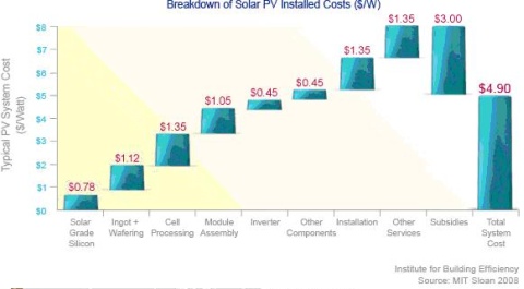 A kép MTI-s tanulmányból származik, mivel azóta panelek ára a töredékére csökkent, most már az egyéb költségek (karbantartás, felszerelés) jóval nagyobbak, amely költségkomponens alig csökken, mivel munkabérből áll leginkább.